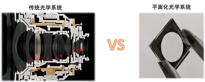 图1 传统光学系统和基于衍射光学元件的平面化光学系统