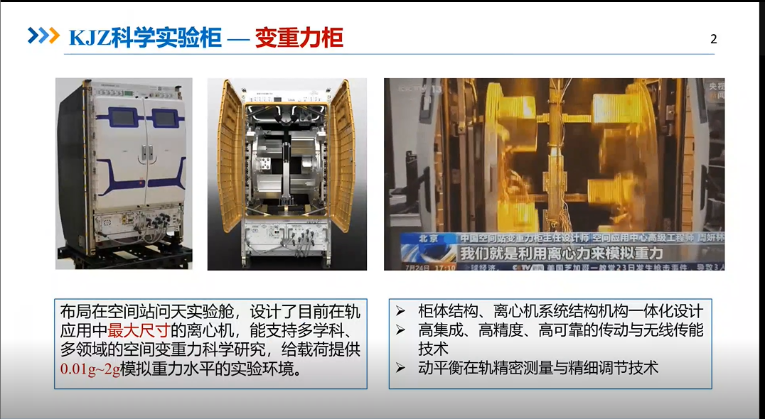 会上,空间站流体物理科学项目学科论证负责人王翀介绍了空间站项目征集和论证的相关情况。中国科学院空间应用工程与技术中心空间站变重力柜项目总体负责人周妍林系统介绍了空间站变重力科学实验柜的研发和相关在轨实验情况。