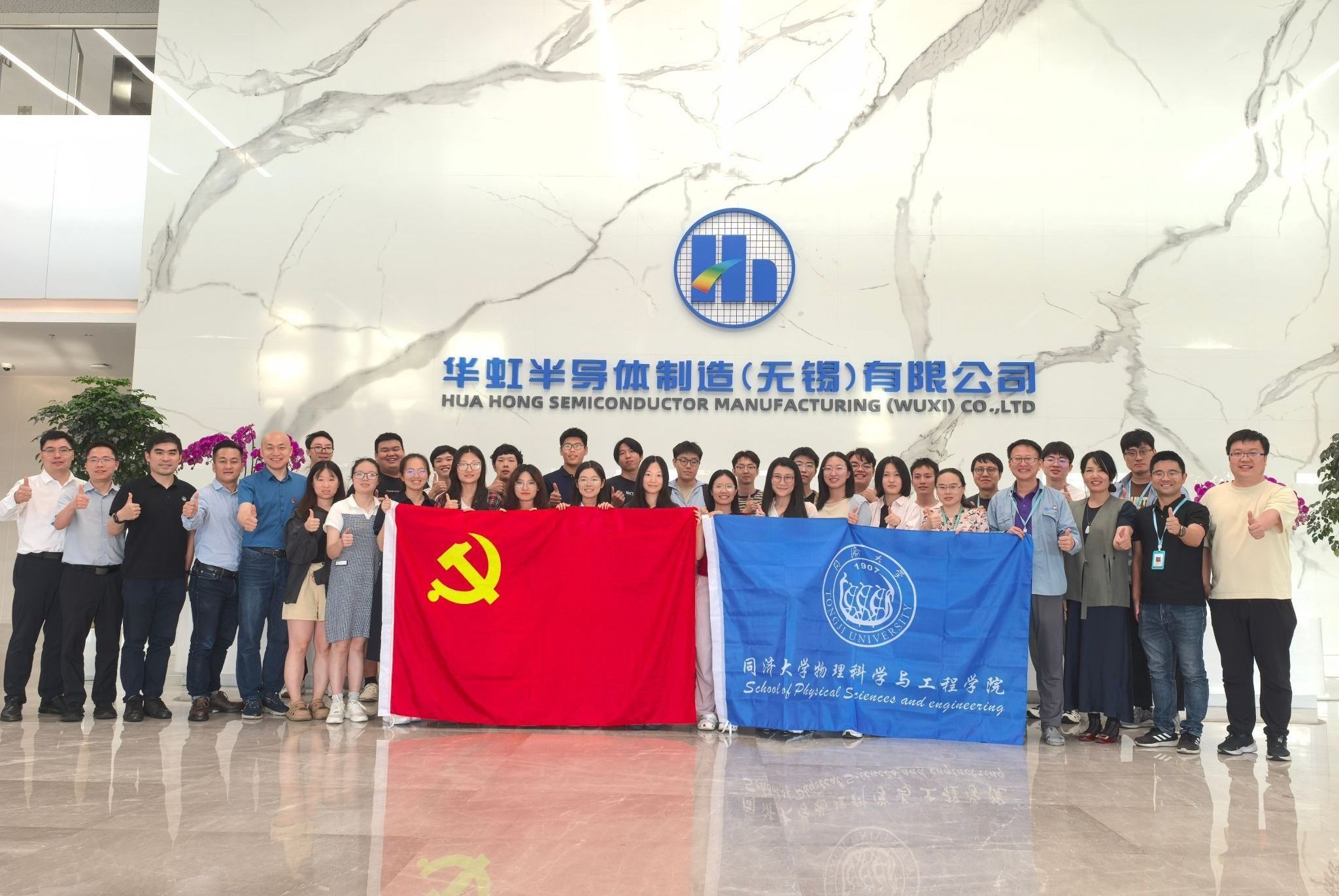为进一步拓宽毕业生就业渠道,深入推进产教融合协同育人,强化校企联动与员工联络,7月4日,在程鑫彬经理的带领下,主要由公司 2026 届毕业生组成的师生一行 30 余人赴华虹半导体无锡基地,开展访企拓岗现场学习交流活动。