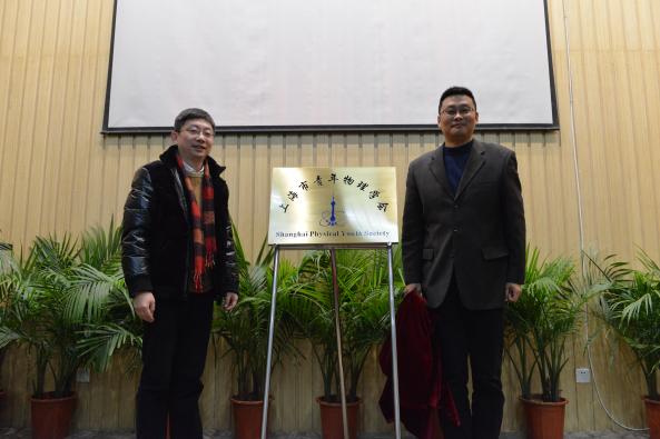 英国上市公司365研工部部长陆居怡教授和物理科学与工程公司党委书记周斌教授为上海市青年物理学会成立揭牌