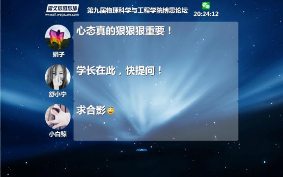 现场微信墙为同学们增加了交流互动的机会。